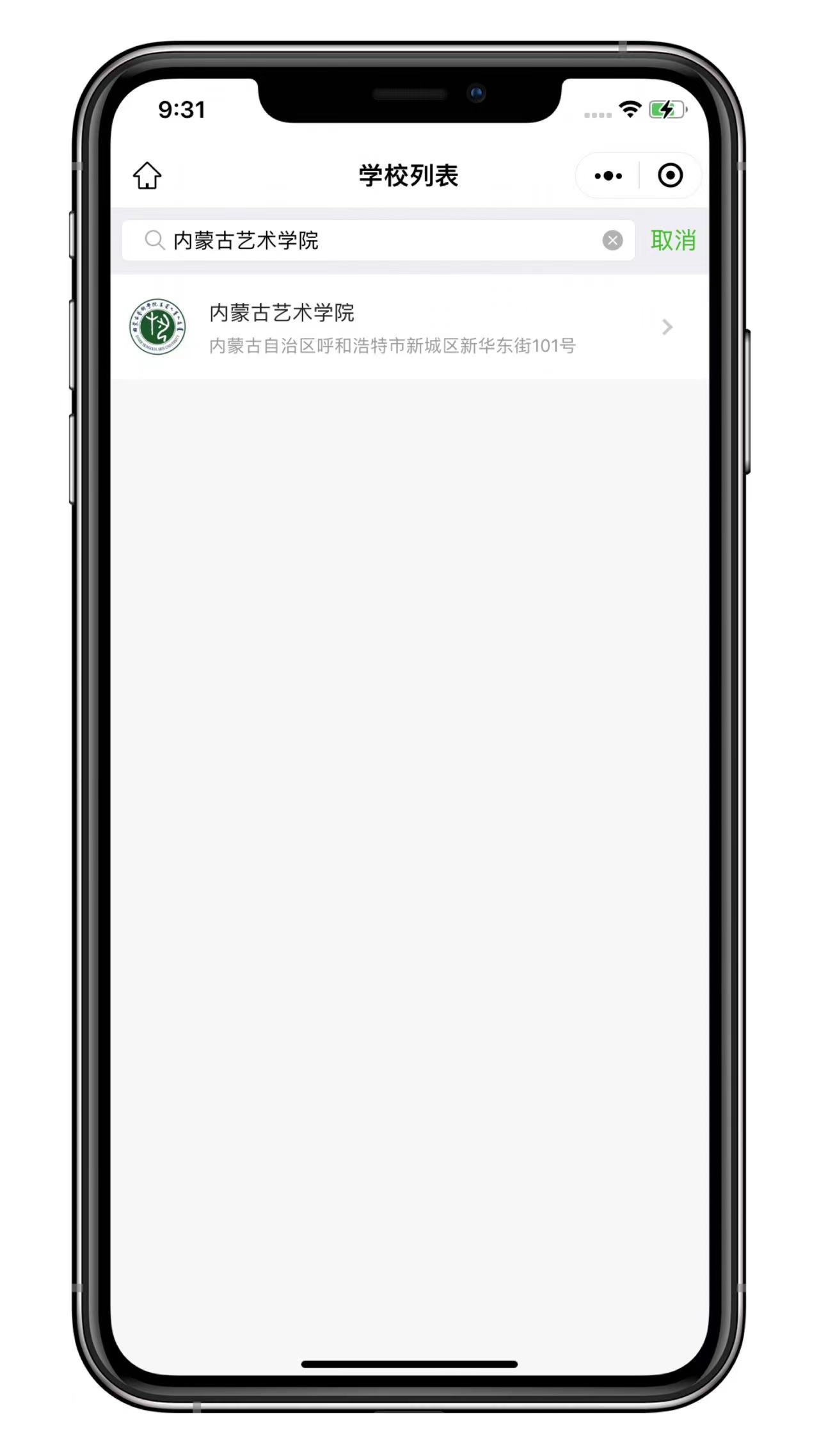 3.查找并选择【内蒙古艺术学院】,输入学工号登录