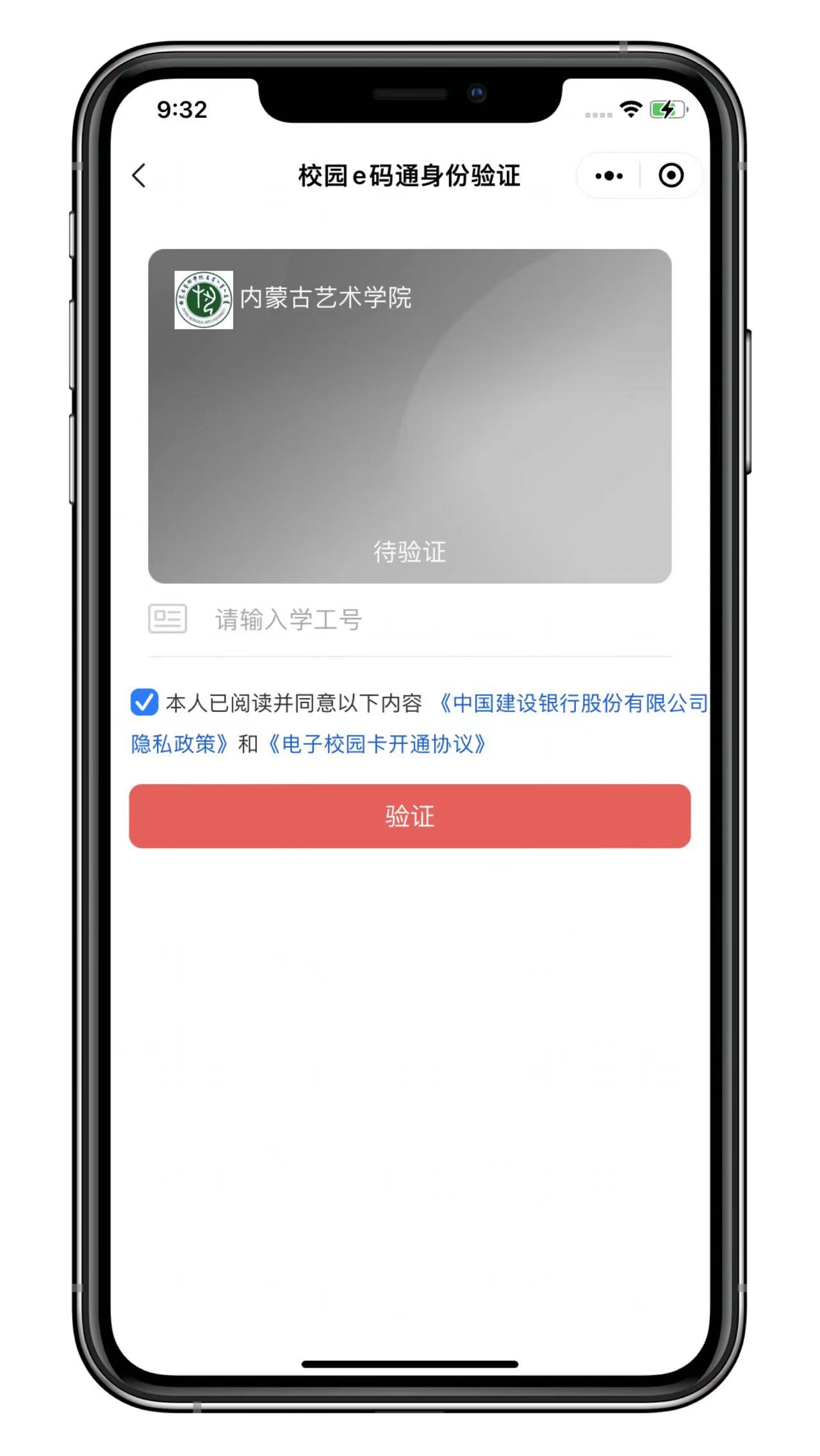 温馨提示:输入正确的学工号,点击验证后会发送短信验证码。如果您点击验证后没有弹出短信验证码发送界面,则说明您尚未激活电子钱包,请先在【i艺苑】APP中绑定银行卡激活电子钱包。