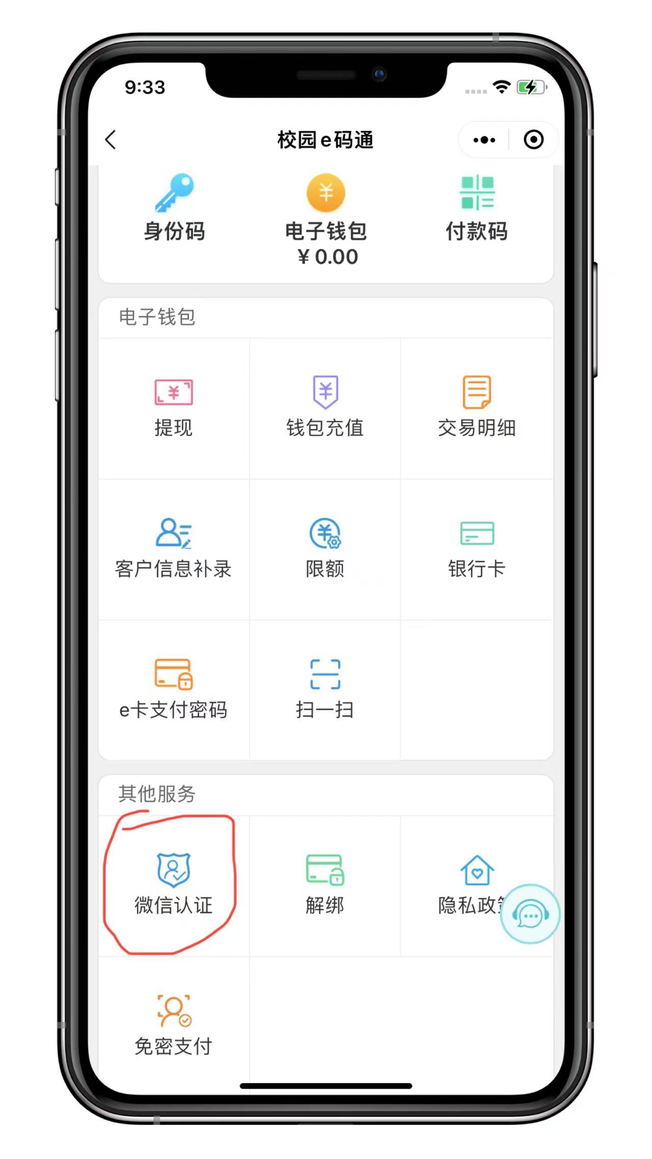 4.点击电子钱包首页下方的“微信认证”按钮,即可完成微信认证